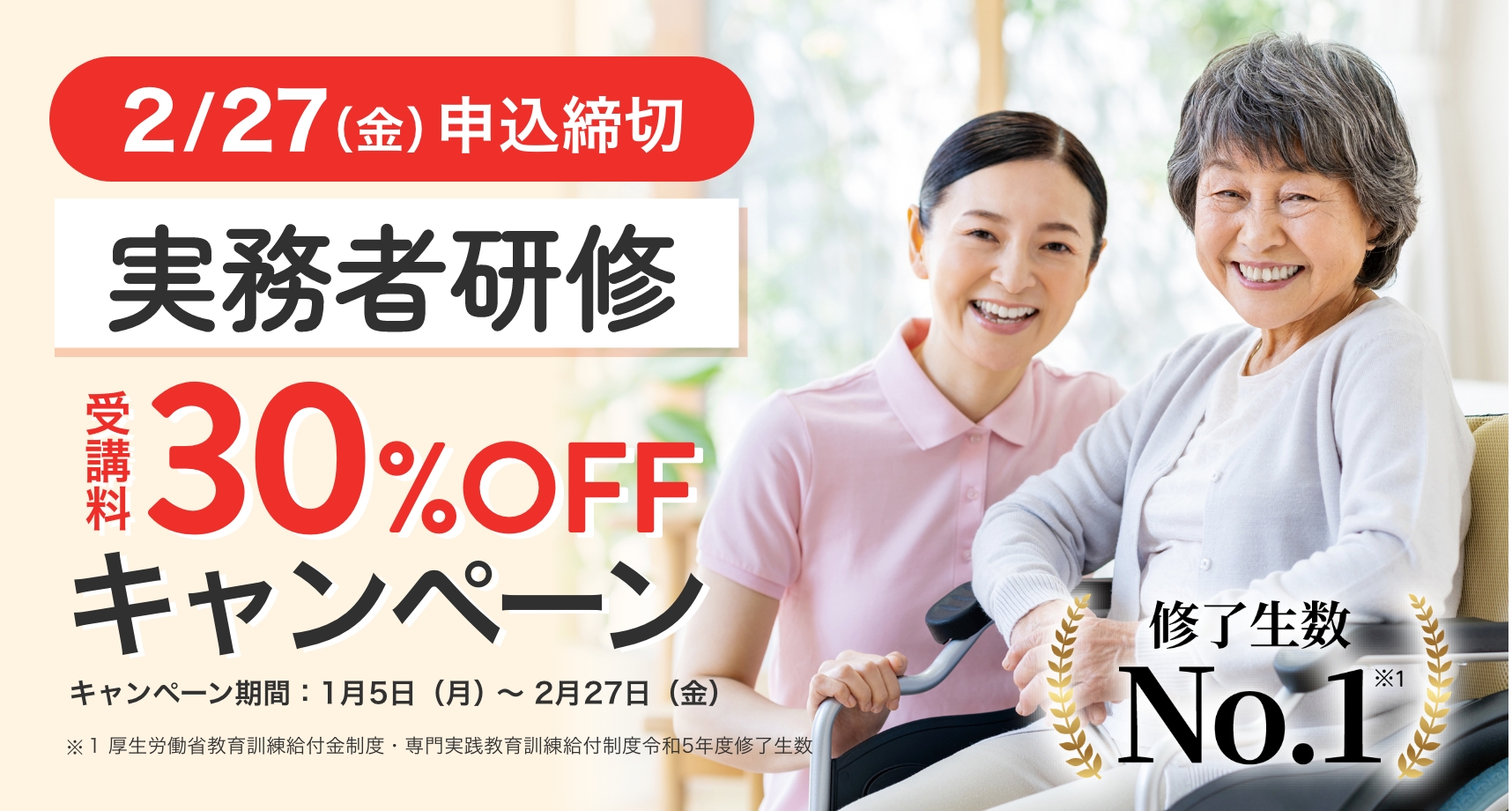 【2/27(金)申込締切※】実務者研修 受講料30%OFFキャンペーン